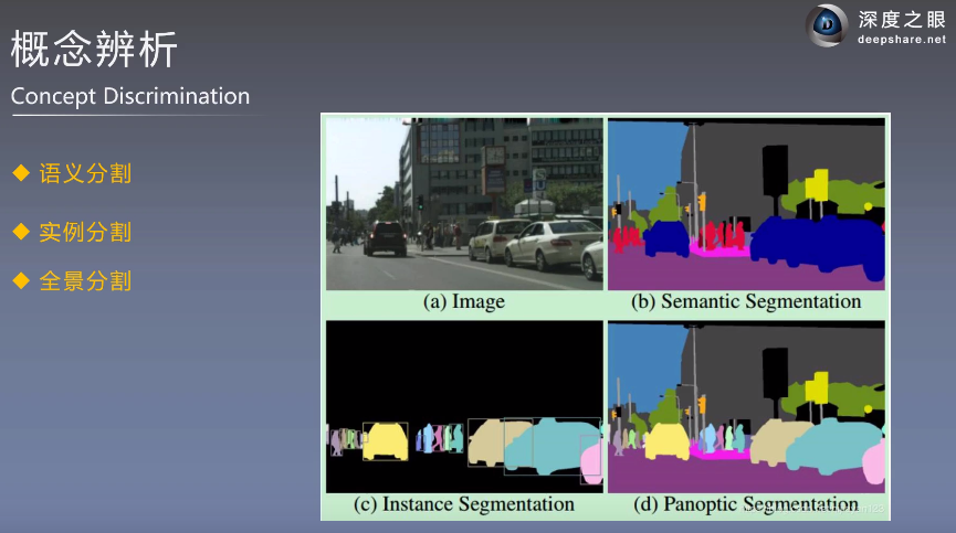 实例分割:只关注我关心的东西(汽车,行人) 其他为背景,统一为黑色